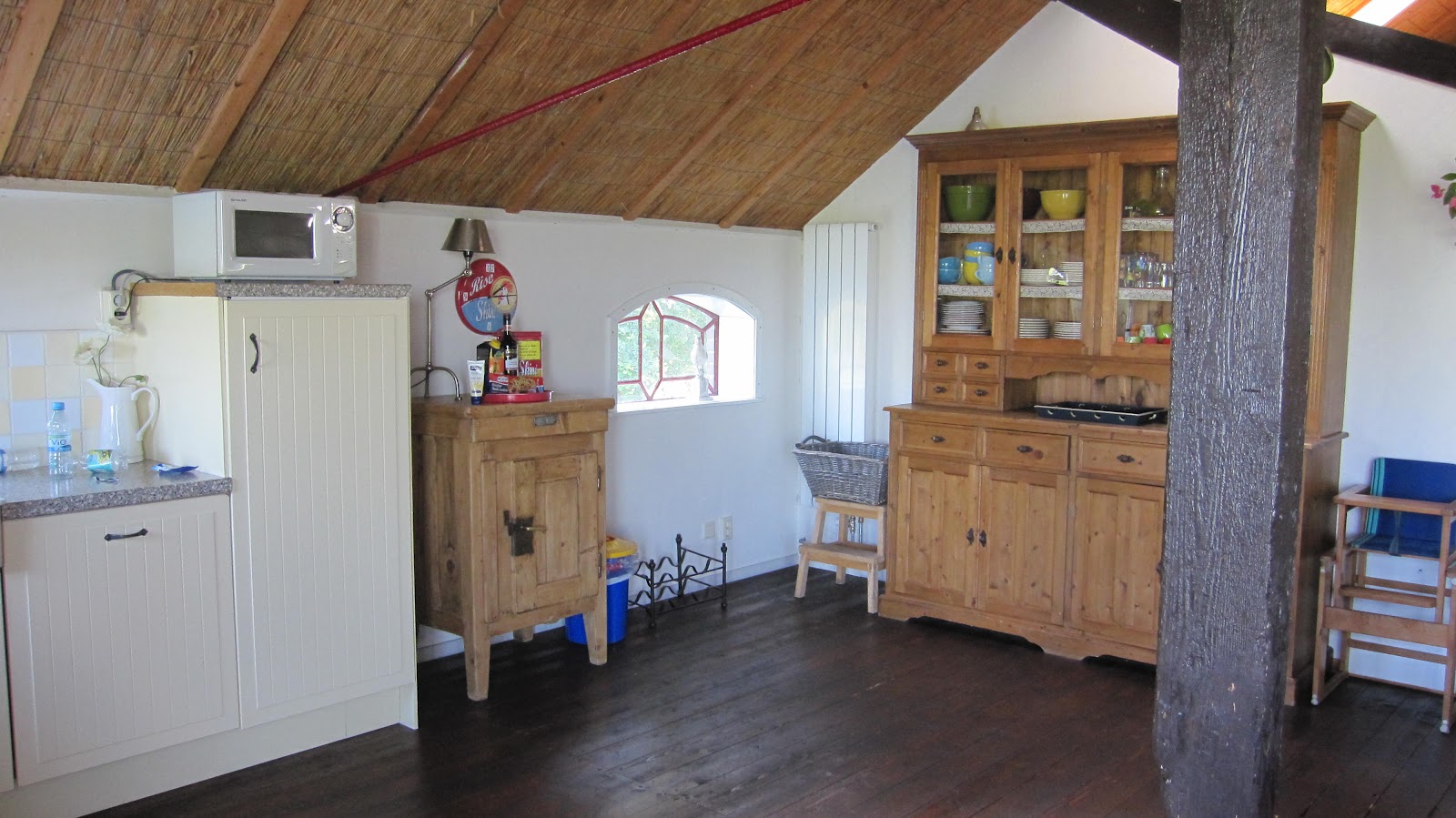 | De Anna Hoeve Farmhouse Kitchen....thatched ceilings and beams.... |